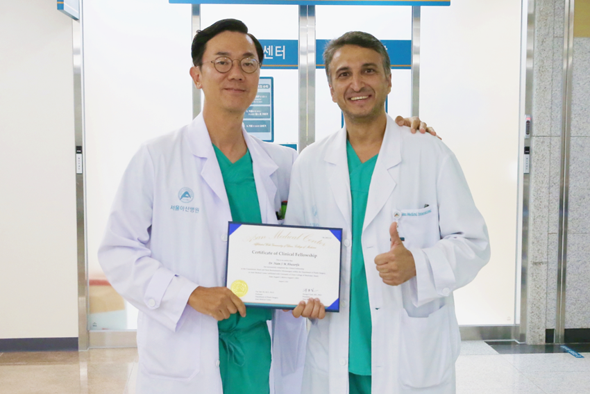 I have built 15 years of clinical experience in head and neck reconstruction across Saudi Arabia, the United Arab Emirates, Malaysia, and Austria. Wanting to further refine my expertise in microsurgical reconstruction, I applied for a fellowship at Asan Medical Center. Since last August, I have been training for a year in the Department of Plastic Surgery at Asan Medical Center, training in advanced head and neck microsurgical reconstruction, including facial procedures and cleft lip and palate surgery. My goal is to share the complex surgical techniques I learned in Korea with my colleagues in Palestine.