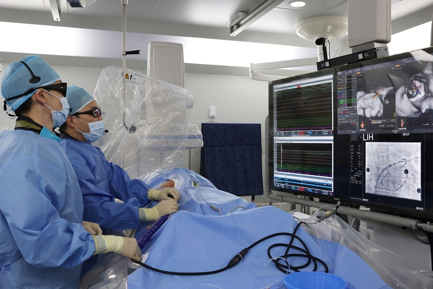 ▲Professor Jun Kim of the Division of Cardiology at Asan Medical Center (right) performs 3D pulse field ablation on a patient with persistent atrial fibrillation.