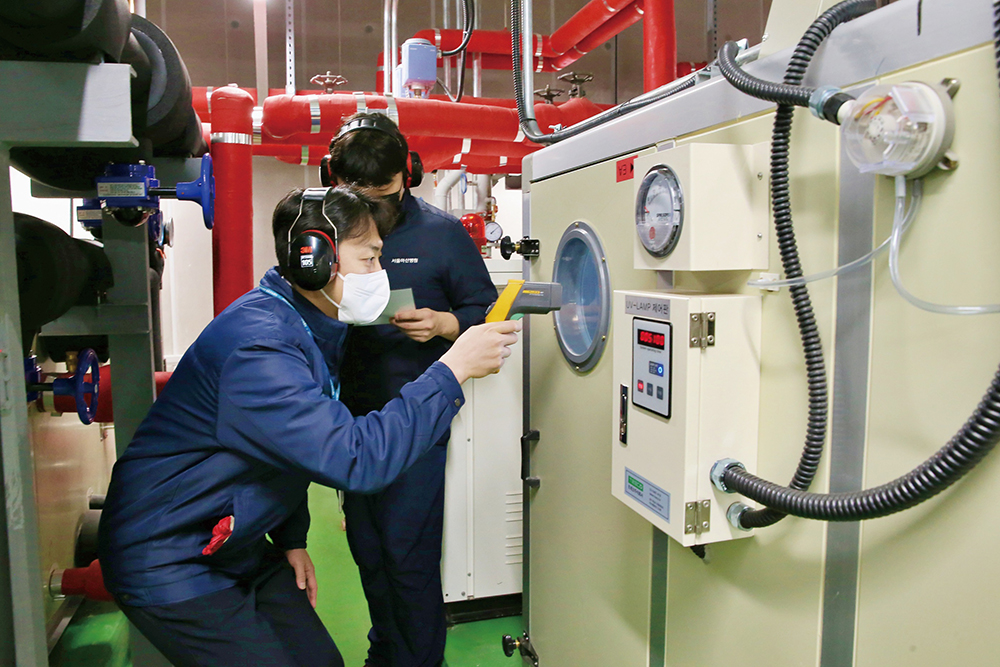 ▲ A staff member of Asan Medical Center is inspecting a waste heat recovery system installed to improve energy efficiency.